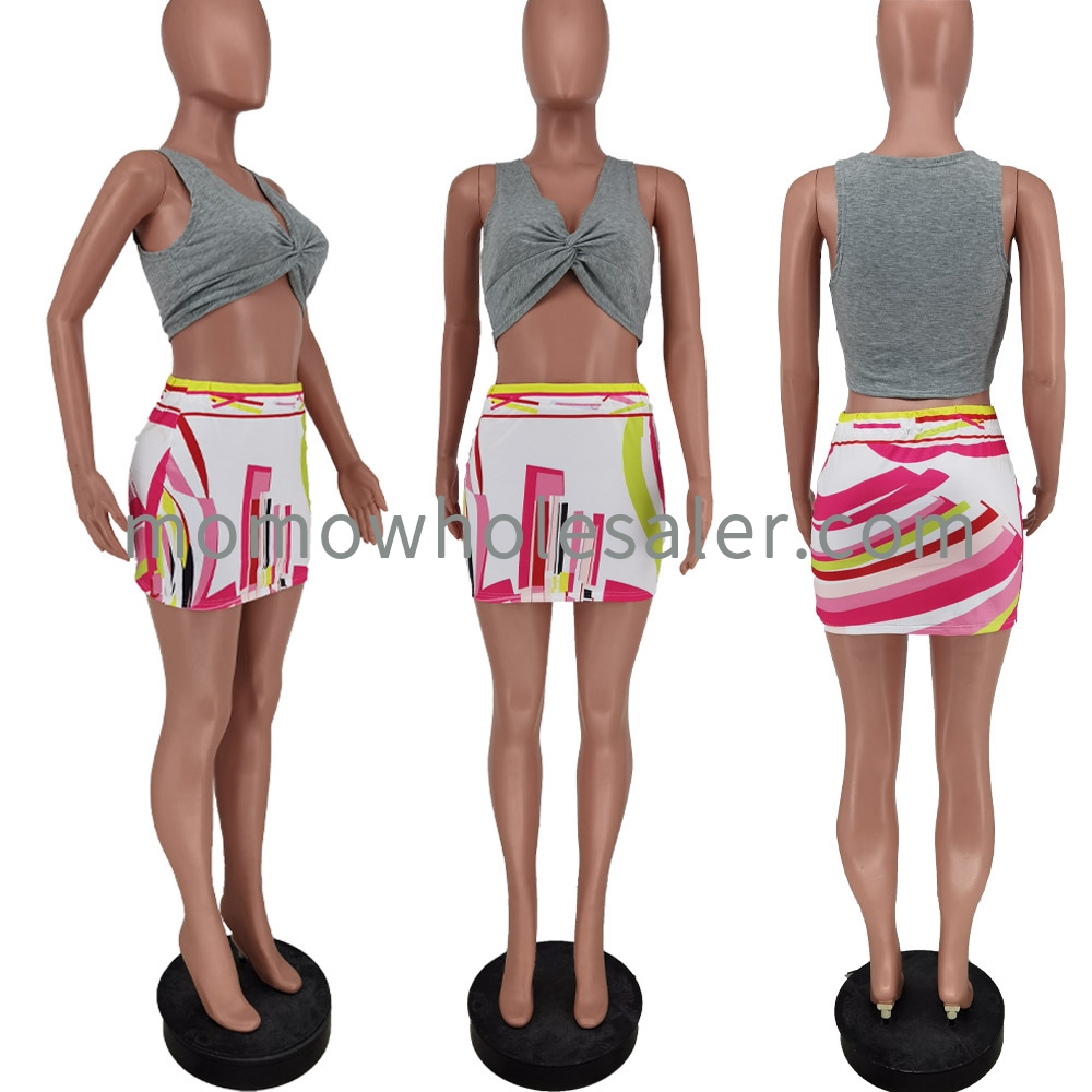 31118 Sexy printed vest and skirt two-piece set