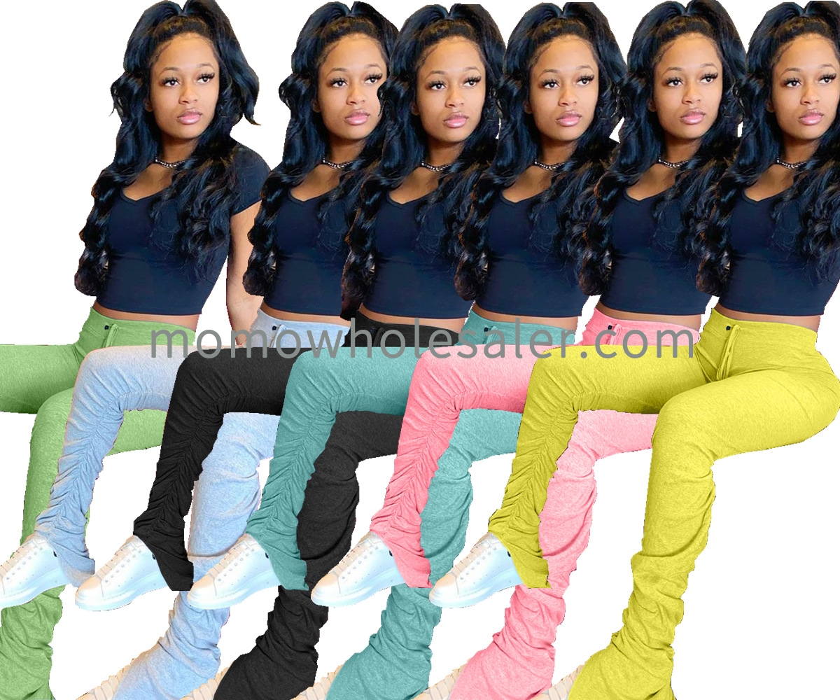 A1158 Solid color sweatshirt fabric mid-waist pleated slit micro-flared sweatpants