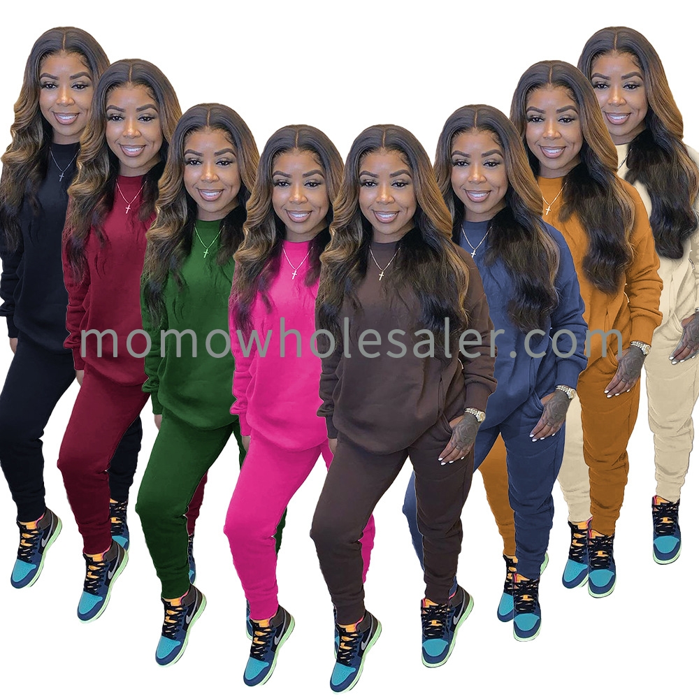 F8036 new solid color sweater two-piece suit