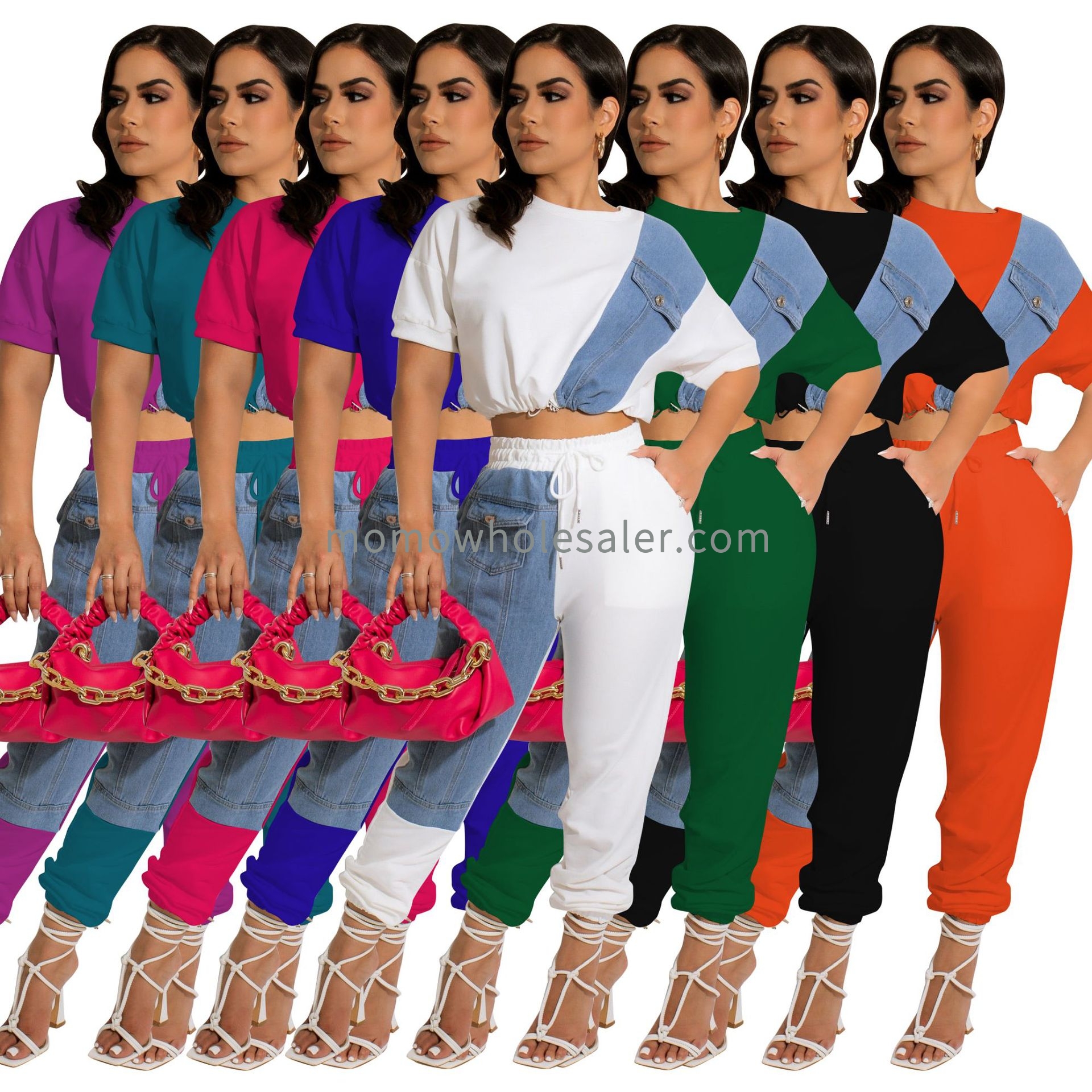F88435 Hot Sale Denim Combination Casual Sports Suit