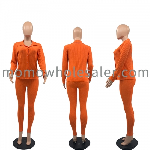 F9080 solid color wool pit strip long-sleeved suit open chest shirt slim trousers two-piece set