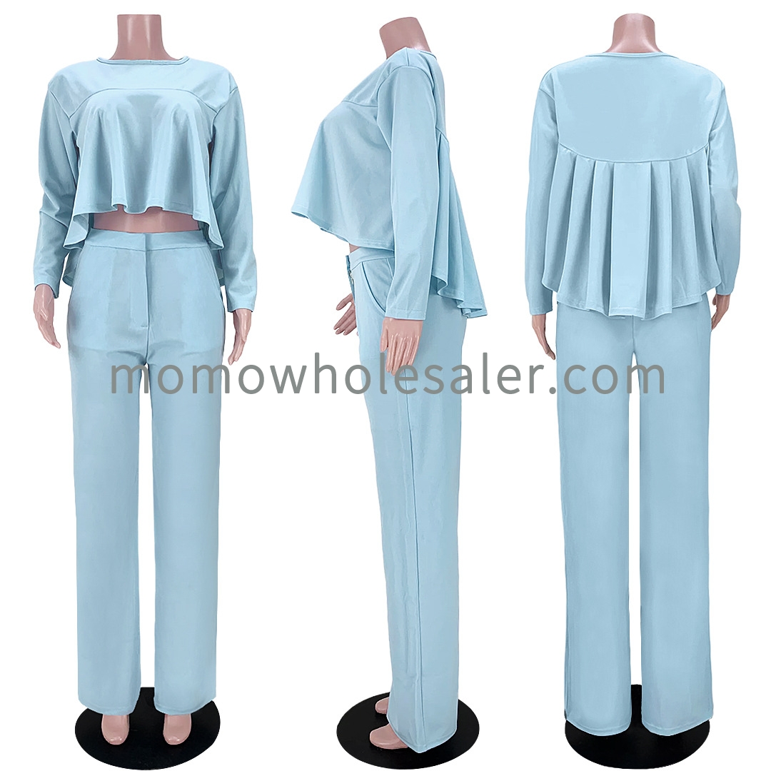 GL6509 Short Front Short Back Long Ruffle Zipper Pocket Straight Pants Two Piece Set