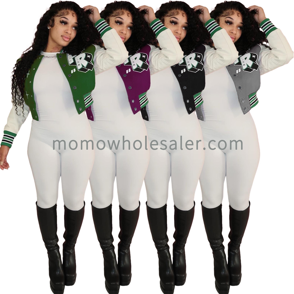 JP1080 long sleeve print thread stitching single-breasted baseball jacket