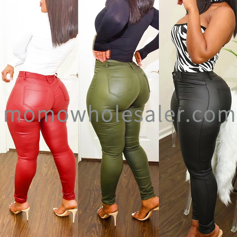 L22PT145 high-waisted PU leather tight hip-lifting pants