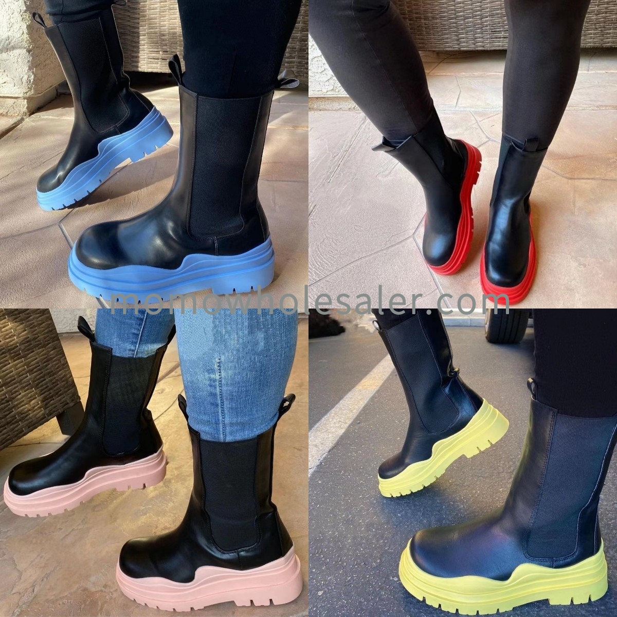 New thick-soled warm elastic elastic mid-tube boots women's round toe casual leather boots Martin boots