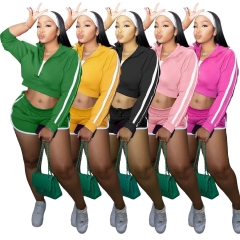 W22803 Casual Zipper Long Sleeve Jacket Sports Shorts Two Piece Suit
