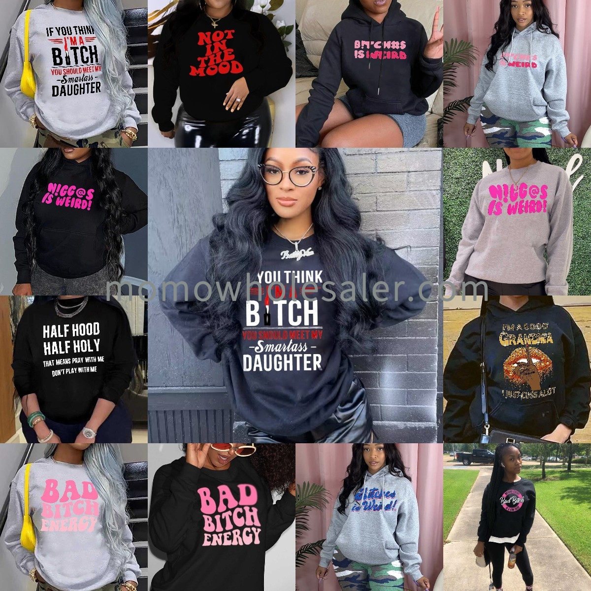 WM089 Fashion Printed Long Sleeve Round Neck Casual (Large Size) Loose Sweater